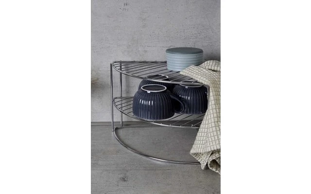 L’étagère d’angle exclusive pour la vaisselle s’intègre dans chaque coin de la cuisine en prenant peu de place. Avec ses deux étagères et un niveau supplémentaire, l’étagère en chrome offre beaucoup d’espace de rangement pour la vaisselle et les ustensiles de cuisine ou les petits appareils de cuisine. Les aliments peuvent également être rangés à portée de main sur cette étagère pratique. Cela fait de l’étagère à vaisselle une aide utile dans chaque ménage.