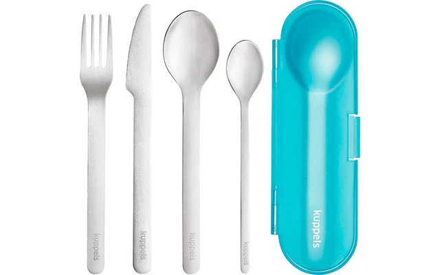 Set de couverts 4 pièces composé de 1 couteau, 1 fourchette, 1 cuillère, 1 cuillère à café, Pour 1 personne, Matériau : lame acier 13/0, acier inoxydable 18/0, Finition : satiné, lavable en machine