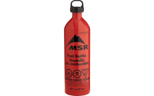Les bouteilles de combustible sont spécialement faites pour le filetage des pompes à combustible MSR et supportent sans problème la pression nécessaire au fonctionnement efficace des réchauds à combustible liquide MSR.
