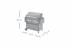 Le barbecue à gaz offre entre autres un allumage piézoélectrique pour un allumage facile des brûleurs. Les caches de brûleur intégrés dans la grille du barbecue permettent d’éviter les flammes instantanées et les feux de graisse.