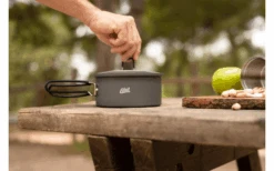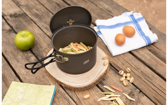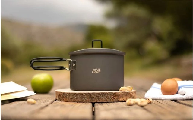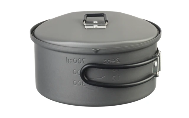 Les bagages devraient être aussi insouciants que les moments passés dans la nature. C’est pourquoi nos casseroles en aluminium anodisé dur, extrêmement légères, sont le bon choix. Ils ne pèsent que 227 g (1100 ml) et 258 g (1600 ml). Le volume est indiqué en ml et en oz à l’intérieur du pot
