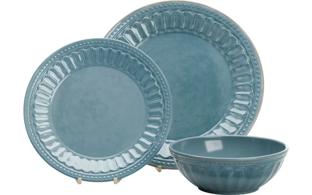 Set de vaisselle en mélamine au design méditerranéen vintage. Ce service combiné noble, composé de 4 assiettes à soupe, 4 assiettes à dessert et 4 bols, transforme le repas en une expérience méditerranéenne ! Il convient pour les aliments, résiste à des températures allant jusqu’à + 70° C et est léger. Le meilleur : Le set de vaisselle passe au lave-vaisselle, ce qui laisse plus de temps pour les moments de convivialité.