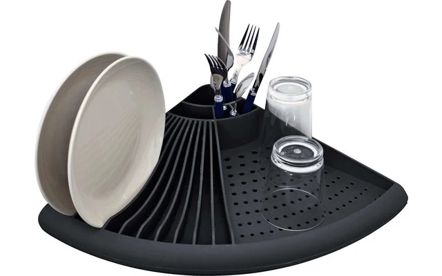 Peut être utilisé comme présentoir à vaisselle et comme égouttoir. Particulièrement peu encombrant grâce à sa forme carrée.