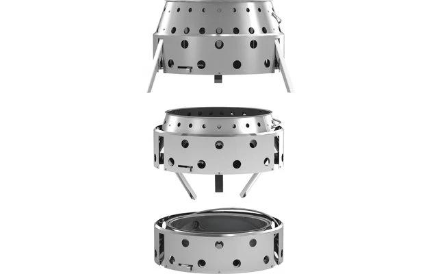 La construction extrêmement raffinée de l’Atago permet d’utiliser l’effet de cheminée de manière optimale. Grâce à l’arrivée d’air réglable en continu, la température peut être réglée à volonté, une ouverture maximale garantissant une mise en chauffe exceptionnellement rapide. De plus, les découpes rondes dans le matériau assurent une ventilation optimale.