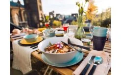 Et si le temps n’est pas de la partie : Le gobelet Bloom s’utilise aussi parfaitement à l’intérieur ! Le gobelet, tout comme l’ensemble de la gamme de vaisselle Bloom, est disponible en six couleurs attrayantes qui peuvent également être combinées entre elles.