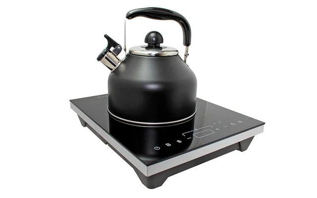 La bouilloire est fabriquée en acier inoxydable de haute qualité et le boîtier est noir satiné. La poignée haute et froide en plastique s’ouvre à la base, ce qui la rend parfaite pour le rangement en voyage et facilite le remplissage d’eau avant l’utilisation. L’élégant couvercle en acier inoxydable est doté d’un bouton en plastique Cool-Touch qui vous permet de faire bouillir de l’eau une par une pour garder la troupe en forme !