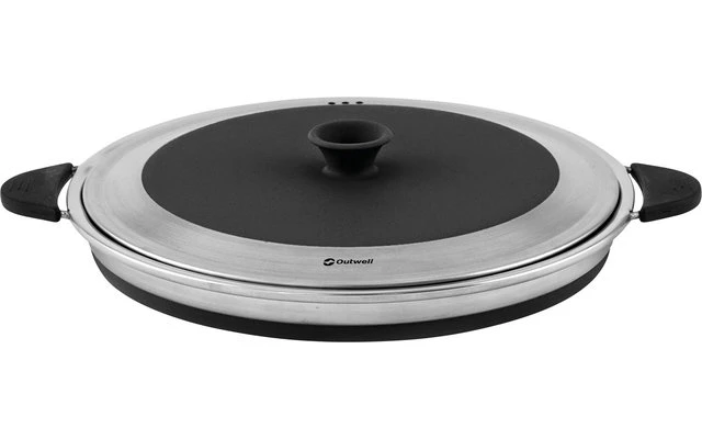 Pot pliable fabriqué à partir d’un savant mélange de matériaux (silicone et acier inoxydable). Vous pouvez donc cuisiner votre plat préféré même dans la caravane. Convient aux aliments et au lave-vaisselle. Hauteur pliée seulement environ 5 cm. Ne convient pas au micro-ondes.