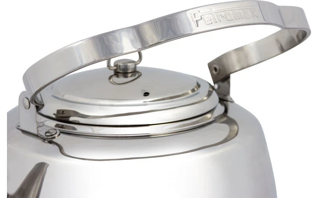 Avec la bouilloire Petromax en acier inoxydable de haute qualité, l’eau est chauffée rapidement et facilement – aussi bien sur un feu ouvert que sur une cuisinière électrique, à gaz ou à induction. L’anse mobile en forme de triple arc permet de le suspendre au-dessus du feu et de le manipuler agréablement. Le fond multicouche garantit une parfaite répartition de la chaleur. La bouilloire est un ustensile chic et utile aussi bien pour l’extérieur, le camping et le jardin que pour la maison.