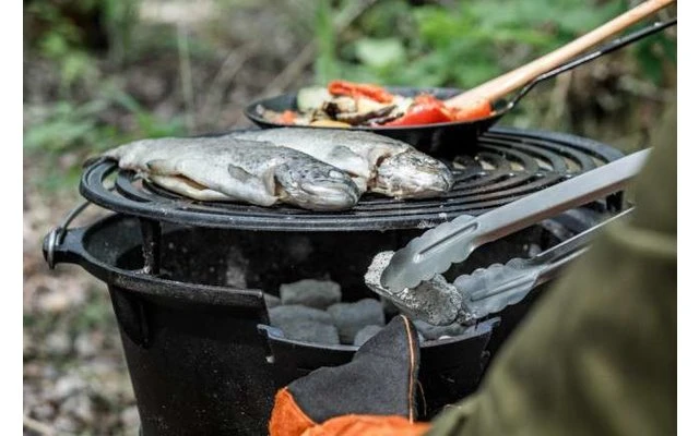 Parce que les grillades sont toujours chaudes, l’effet anti-adhérent naturel de la grille de barbecue en fonte est un avantage décisif. Avec du charbon de bois et des briquettes de barbecue, ton barbecue du feu est chauffé rapidement et durablement. Tu peux combiner le barbecue à feu avec un pot à feu (dutch oven), de sorte que l’excellente accumulation de chaleur rend la cuisson particulièrement économe en énergie.