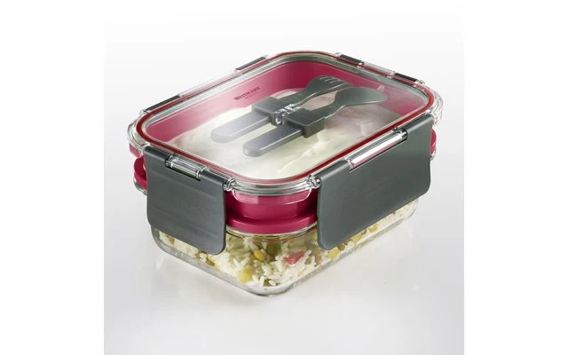Ainsi, rien n’est perdu. Le clou : la lunch box peut être utilisée de manière flexible : avec les deux récipients ou uniquement avec le récipient en verre ou en plastique.